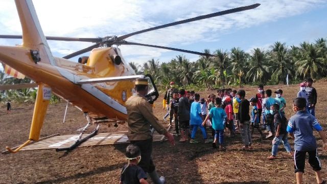 JAMBERITA.COM- Helikopter yang melintasi dan mendarat di lapangan sepak bola Desa Labuhan Pering, Kecamatan Sadu, Kabupaten Tanjab Timur, diserbu oleh anak-anak dnegan penuh riang gembira (Rabu, 15/07/2020).