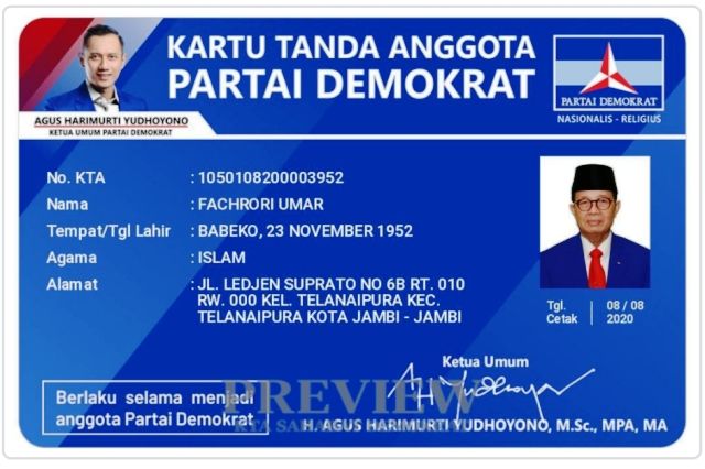 Ini dengan beredarnya Kartu Tanda Anggota (KTA) Fachrori Umar sebagai kader Partai Demokrat. Padahal, saat ini Gubernur Jambi tersebut masih tercatat sebagai Kader Partai Nasdem.