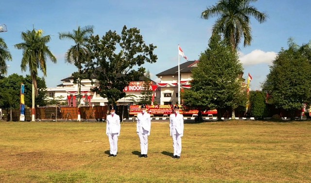 JAMBERITA.COM- Delapan Pasukan Pengibar Bendera Pusaka (Paskibraka) Provinsi Jambi menjelang pelaksanaan Kemerdekaan RI menggelar Gladi Bersih, Jum'at (14/8/2020).