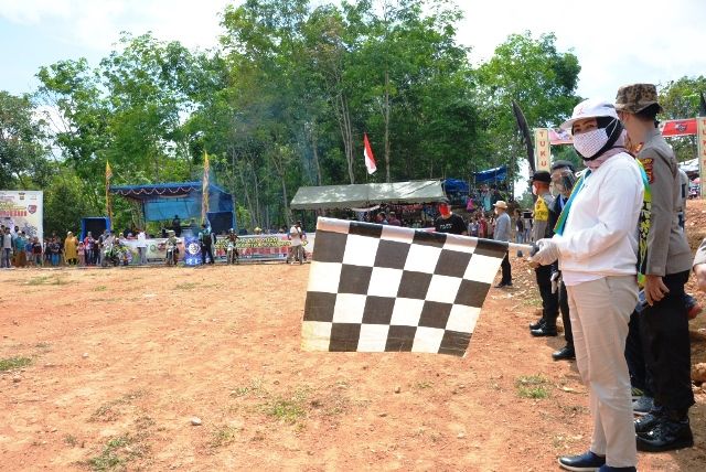 JAMBERITA.COM- Gubernur Cup Motocross dan Grasstrack Sumatera Open 2020 dibuka Staf Ahli Gubernur Jambi Bidang Ekonomi dan Pembangunan Ir.Hj.Sri Anggunaini,M.Si, yang berlangsung di Lapangan Cross Tukum I Sirih Sekapur Kecamatan Jujuhan, Sabtu (15/8/20).
