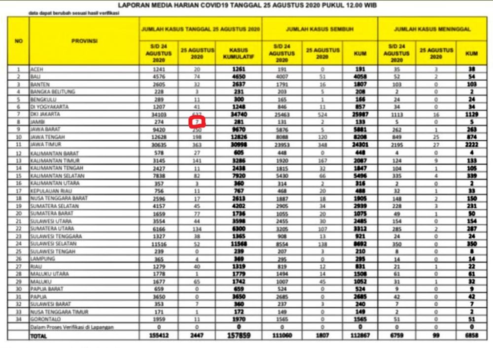 Hingga saat iní belum ada keterangan resmi dari Jubir Penanganan Covid 19 Provinsi Jambi