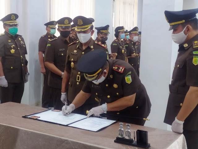 JAMBERITA.COM - Kejaksaan Tinggi Jambi melaksanakan pelantikan dua Kepala Kejaksaan Negeri dan Asisten Pembinaan Kejati Jambi di Aula Kejati Jambi, Kamis (27/8/2020).