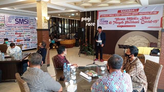 JAMBERITA.COM- Pada Rapat Kerja Daerah (Rakerda) I Serikat Media Siber Indonesia (SMSI) Provinsi Jambi, Mukhtadi Putranusa selaku ketua menyampaikan telah bergabung sebanyak 64 perusahaan media siber hingga saat ini dan tersebar diseluruh kabupaten/kota se-provinsi Jambi.