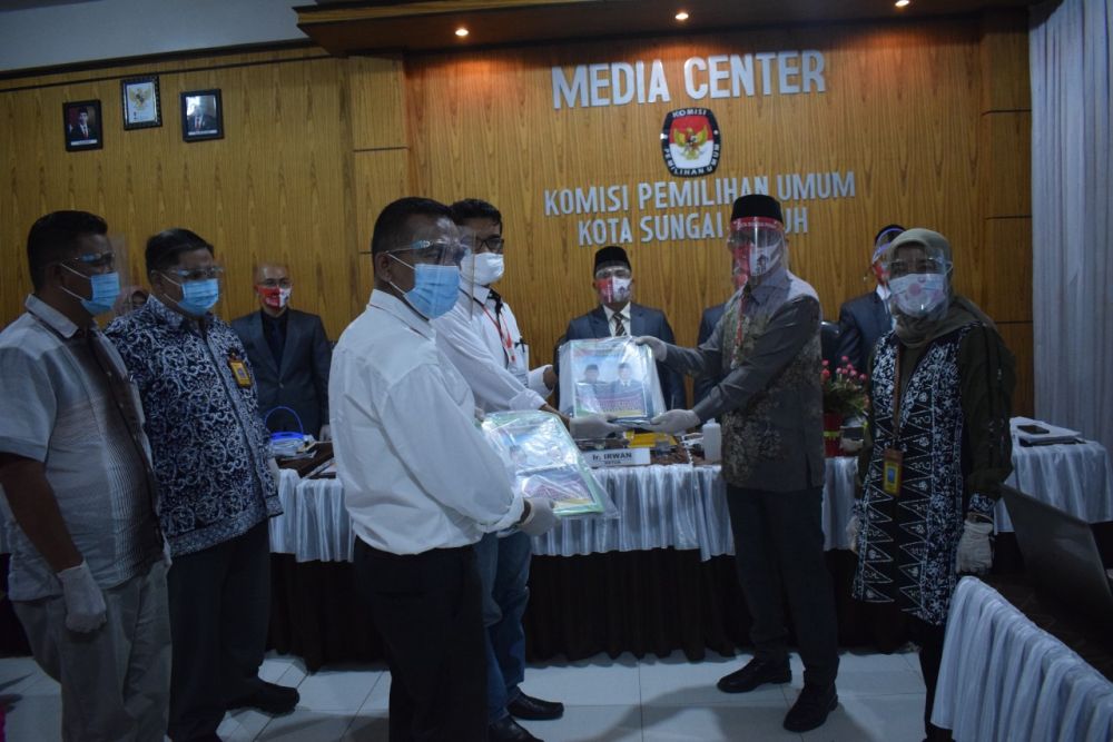 "Pada hari terakhir Minggu, 13 Sep pukul 18.56 Wib. Telah diterima Bapaslon atas nama Drs. Ahmadi Zubir .M.M Dr. Alvia Santoni, SE,.M.M Diusung oleh Gabungan Parpol : 1. PDIP 1 Kursi 2. PPP 3 Kursi 3. P. Berkarya 1 Kursi Jumlah 5 Kursi (20 %)," kata M Sanusi, Komisioner KPU Provinsi Jambi M Sanusi melalui pesan Whats appnya pagi ini Senin (14/9/2020).