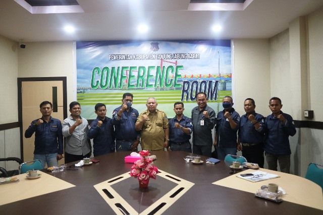 JAMBERITA.COM- Bupati Tanjung Jabung Barat Dr. Ir. H. Safrial MS sambut langsung kunjungan Ketua beserta Pengurus Forum Jurnalis Tanjab Barat (FJ-TJB) dalam rangka audiensi sekaligus silaturahmi di Ruang Rapat Bupati, Selasa (15/09).