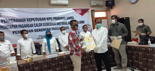 Ini setelah KPU Provinsi Jambi mengumumkan hasil verifikasi dan pemeriksaan kelengkapan berkas bakal calon Gubernur dan Wakil Gubernur Jambi, Rabu (23/9/2020).