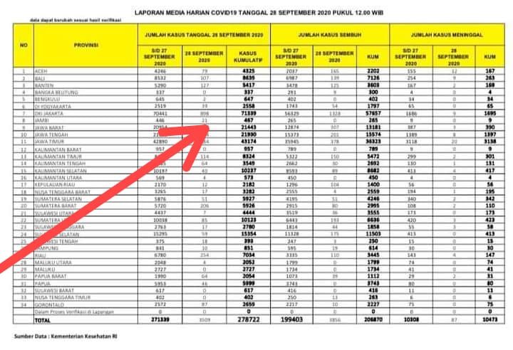 Itu berdasarkan laporan media harian Covid-19, 28 September 2020 Sumber data dari Kemenkes RI. Untuk lebih lanjut belum adanya keterangan secara resmi dari Tim Gugus Tugas Provinsi Jambi. (Afm)