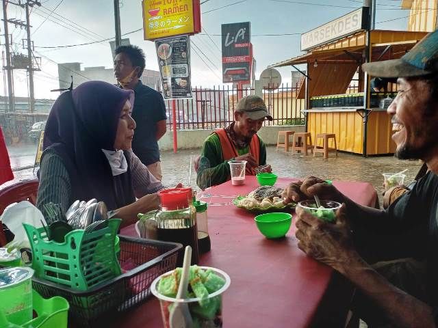 "Bagaimana pak, enak empek - empeknya, dihabisin ya pak makanannya," celoteh Ratu saat ngobrol santai dengan para pekerja bangunan itu.