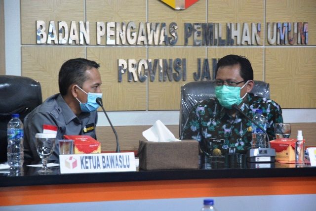 JAMBERITA.COM- Penjabat Sementara (Pjs) Gubernur Jambi Ir.Restuardy Daud,M.Sc melakukan kunjungan kerja ke Kantor Bawaslu Provinsi Jambi dengan agenda terkait Pengawasan Pemilihan Kepala Daerah di Provinsi Jambi, Selasa (29/9/20) sore. Kunjungan kerja ke Bawaslu ini juga seiring dengan salah satu agenda prioritas Restuardy selama menjadi Pjs.Gubernur Jambi, yakni menyukseskan Pilkada 2020 yang aman dari Covid-19.