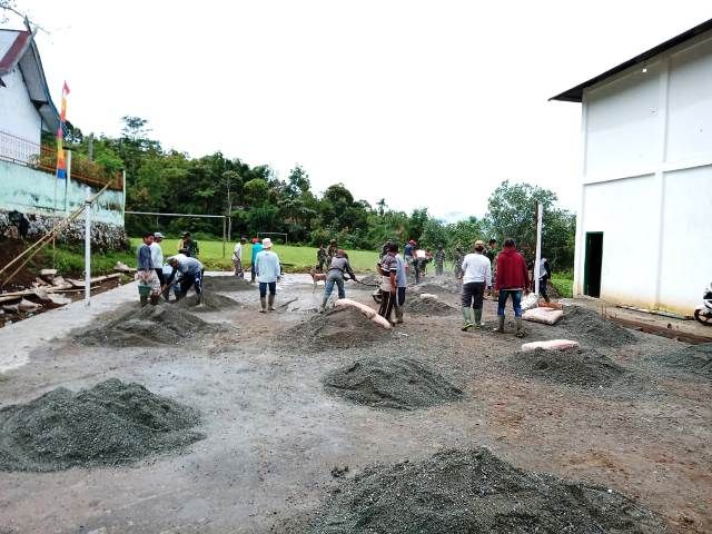 JAMBERITA.COM- Satuan Tugas (Satgas) TNI Manunggal Membangun Desa (TMMD) reguler ke 109 membangun satu unit lapangan bola voli.