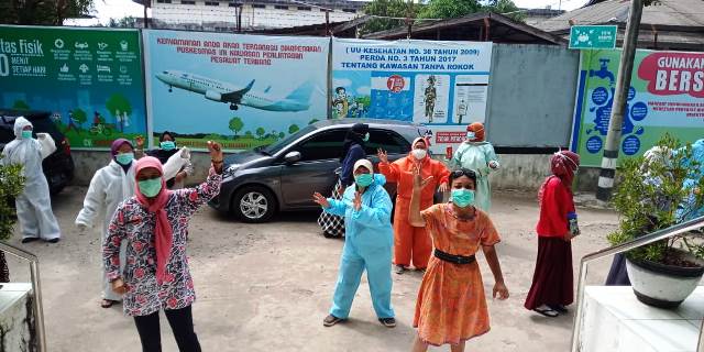 Secara protokol, sejak pasien masuk ke area puskesmas itu jelas kawasan wajib masker. Jadi semua yang datang wajib menggunakan masker.