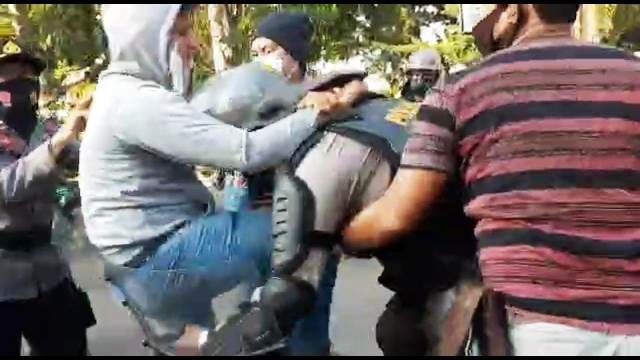Kabid Humas Polda Jambi, Kombes Pol Kuswahyudi Tresnadi membenarkan video tersebut karena petugas mengamankan mahasiswa bukan aparat."Ya, itu yang diamankan mahasiswa salah satu kampus di Jambi yang melakukan anarkis dan melawan saat diamankan, " tegasnya, Rabu (21/10/2020).