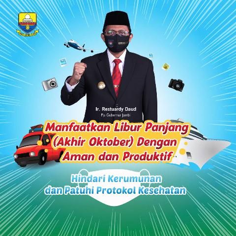 Pjs Gubernur Jambi Restuardy Daud mengatakan, bahwa libur panjang akhir Oktober 2020 ini jangan sampai memimbulkan kluster baru. Oleh karena itu, Pemprov Jambi bersinergi dengan seluruh instansi terkait melakukan upaya mengantisipasi terjadinya peningkatan Covid-19 pada libur panjang.