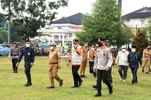 JAMBERITA.COM- Kapolda Jambi, Irjen Polisi Firman Santyabudi menghadiri Apel Kesiapsiagaan Menghadapi Bencana Hidrometeorologi (Banjir, Tanah Longsor dan Puting Beliung) di Lapangan Depan Kantor Gubernur., Senin (26/10/2020).