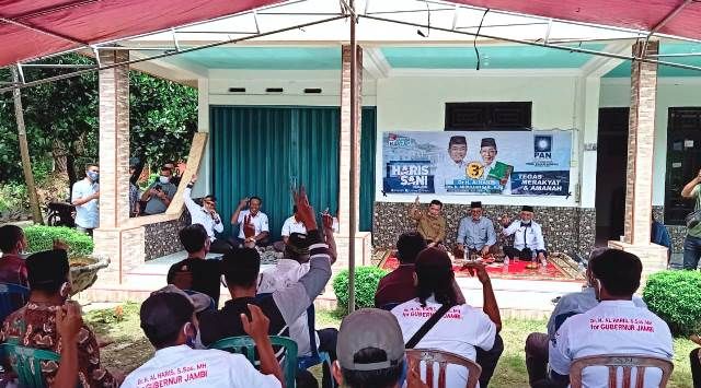 Pertama Al Haris melakukan konsilidasi tim pemenangan Haris-Sani dan dialog dengan tokoh masyarakat Dendang di Sido Mukti, Kecamatan Dendang.