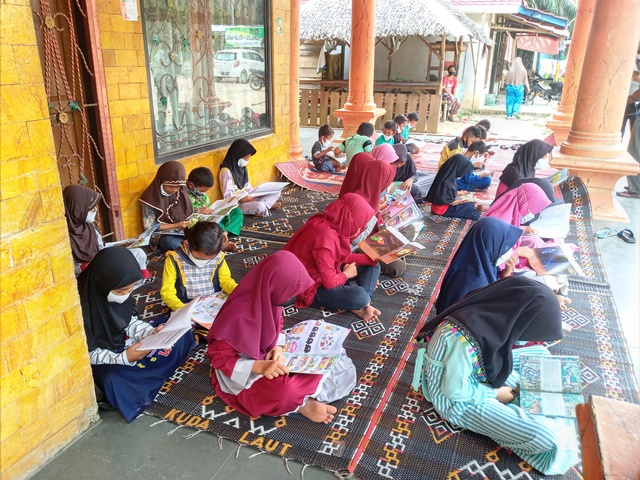 Antusiasme anak-anak ini menyambut kehadiran perpusling menunjukkan tingginya semangat gemar membaca di Desa Terjun Gajah.