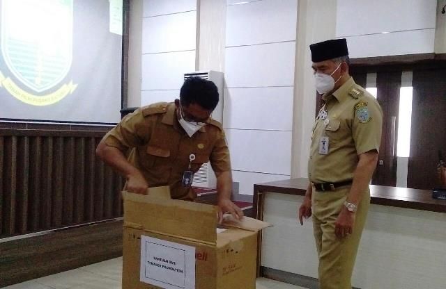 JAMBERITA.COM - Pemerintah Singapura melalui Tamasek Foundation kembali memberikan bantuan kepada Pemerintah Kota Jambi. Kali ini bantuan yang diberikan berupa oksigen konsentrat. Senin, (23/11/2020).