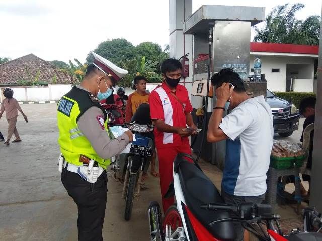 "Himbauan melengkapi TNKB kendaraan dan selalu gunakan Masker untuk pencegahan penyebaran Covid-19, rombongan juga melakukan pembagian Masker keoada masyarakat yang tidak mengunakan Masker," terangnya.