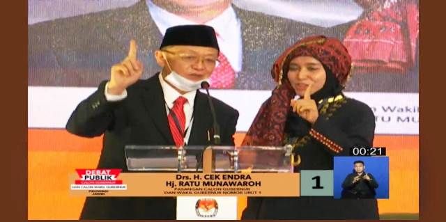 JAMBERITA.COM - Closing statement debat terbuka putaran ketiga paslon Gubernur dan Wakil Gubernur Jambi Cek-Ratu mengajak seluruh masyarakat 9 Desember 2020 coblos nomor 1.