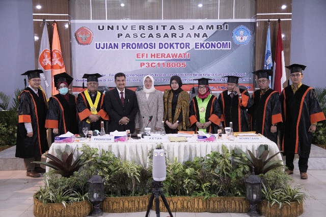 Dalam sidang promosi yang dipimpin Ketua Sidang PROF. DR. IR. HJ. ANIS TATIK MARYANI, MP, Penguji Eksternal PROF. DR. HJ. MARNIS, S.E., M.S, Sekretaris Sidang DR. H. ZAMZAMI, SE, M.SI, Para Penguji DR. ENGGAR DIAH PUSPA ARUM SE, AK, M.SI, CA dan DR. DRS. SYAHMARDI YACOB, MBA.
