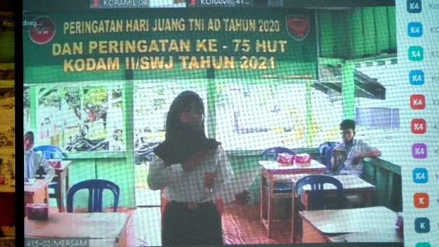 JAMBERITA.COM - Dalam rangka memeriahkan dan menyambut Hari Juang Kartika (HJK) TNI AD tahun 2020 dan HUT Ke-75 Kodam II/Sriwijaya, Korem 042/Gapu menyelenggarakan Lomba Lukis dan Baca Puisi secara virtual, Senin ( 14/12/2020).