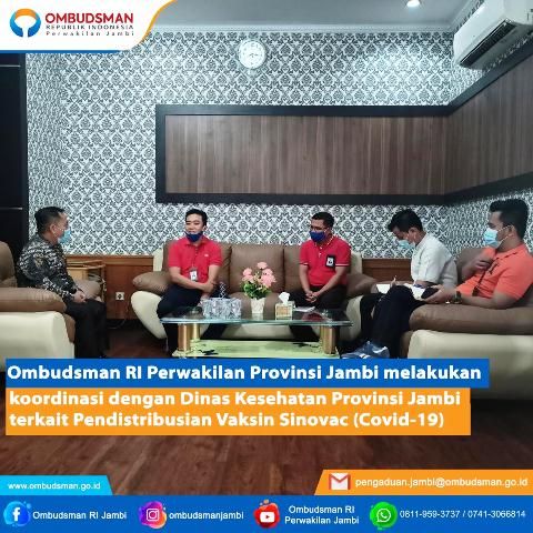 Dalam kunjungan tersebut, Ombudsman Jambi langsung berkoordinasi dengan Plt Kepala Dinkes Jambi, Raflizar terkait penyaluran vaksin.