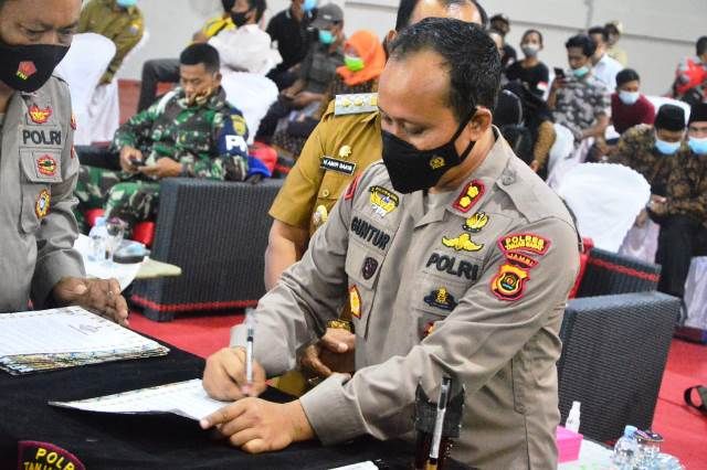 Sub Pom II/Kuala Tungkal, Kabag Ops Polres Tanjab Barat, Kabag Sumda Polres Tanjab Barat, Kasat Binmas Polres Tanjab Barat, Kapolsek Tungkal Ilir, Kapolsek KSKP, Para Pengurus Pokdarkamtibnas Pesisir Kab. Tanjab Barat -+ 90 Orang.(*/afm)