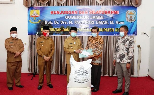 JAMBERITA.COM - Gubernur Jambi Dr.Drs.H.Fachrori Umar,M.Hum menyalurkan bantuan Cadangan Pangan Pemerintah Daerah (CPPD) Provinsi Jambi kepada masyarakat Kota Sungai Penuh, yang disaksikan oleh Wali Kota Sungai Penuh dan jajaran Pemerintah Kota Sungai Penuh.