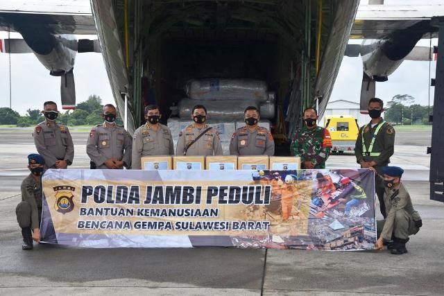 JAMBERITA.COM - Wakapolda Jambi Brigjen Pol Yudawan R secara resmi melepas Bantuan Sosial (Bansos) Polda Jambi Peduli Bencana Gempa Bumi yang menimpah masyarakat di Sulawesi Barat (Sulbar) dan Banjir di Kalimantan Selatan (Kalsel).
