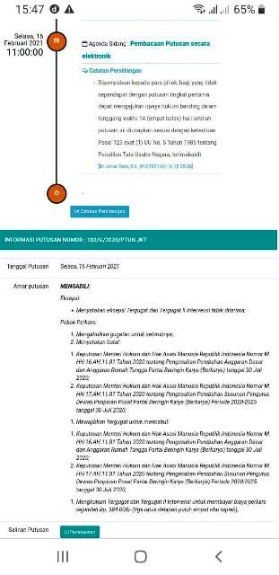 "Alhamdulillah, tadi sudah diputuskan oleh Hakim PTUN bahwa kami dimenangkan. Dengan ini SK yang kepengurusan satunya dinyatakan tidak sah dan kepengurusan Ketua Umum Tommy Soeharto yang sah," kata Ketua DPW Partai Berkarya Provinsi Jambi Ambiar Usman kepada Jamberita.com, Selasa (16/2/2021).