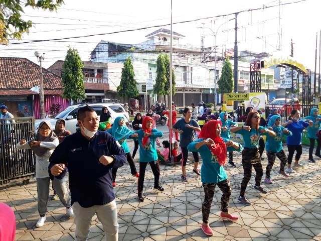 Sebelum senam, KFA-sapaan akrabnya membagikan masker kepada peserta senam.