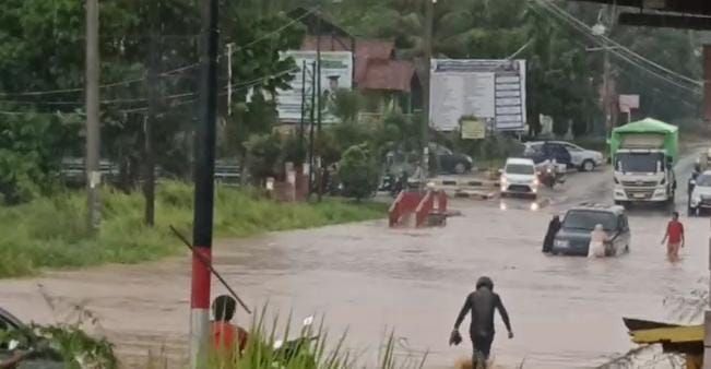 Penelusuran jamberita.com melalui sebuah video berdurasi 12 detik tampak sebuah mobil berwarna hitam dari arah Sungai Duren menuju ke Jambi hampir tenggelam karena tinggi nya luapan air.