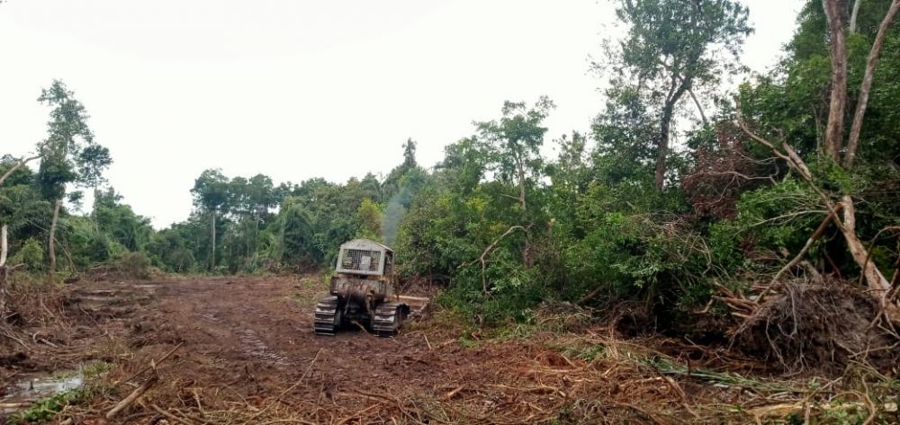 Babinsa Serda Sondriadi, menerangkan, bahwa pihaknya dengan menggunakan alat berat jenis dozer dalam menerobos lahan tersebut.