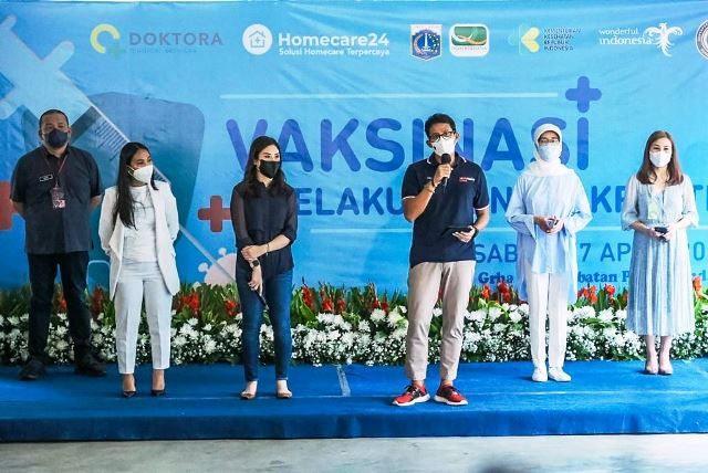 JAMBERITA.COM- Kementerian Pariwisata dan Ekonomi Kreatif/Badan Pariwisata dan Ekonomi Kreatif (Kemenparekraf/Baparekraf) memfasilitasi vaksinasi COVID-19 bagi pelaku ekonomi kreatif (ekraf) sebagai salah satu upaya mempercepat pemulihan sektor tersebut. Penyelenggaraan vaksinasi ini dilakukan bekerja sama dengan Kementerian Kesehatan, Dinas Kesehatan DKI Jakarta, dan Homecare 24.