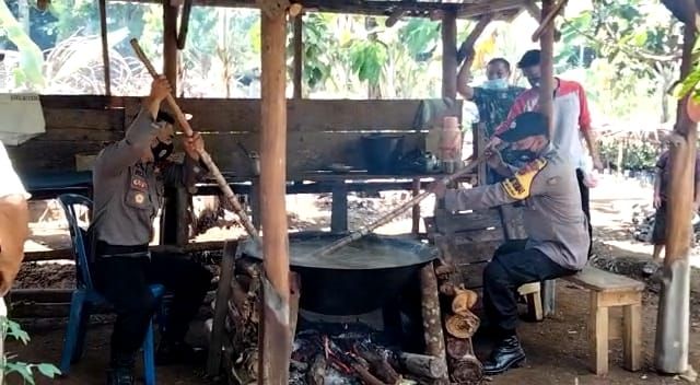 JAMBERITA.COM, MERANGIN - Menjaga Keamanan dan ketertiban masyarakat (Kamtibmas) menjelang hari raya Idul Fitri, Kapolsek Masurai IPTU Rezi ikut Mengaduk (Ngacau) Jodah milik satu warga Masurai.