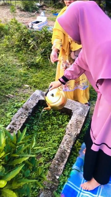 Ia mengatakan, dirinya bersama keluarga melakukan ziarah pada sore hari. Siang hari banyak juga yang melakukan ziarah kubur. Biasanya di desa ini kalau ziarah kubur kerumunan padat itu tidak bisa dihindari.