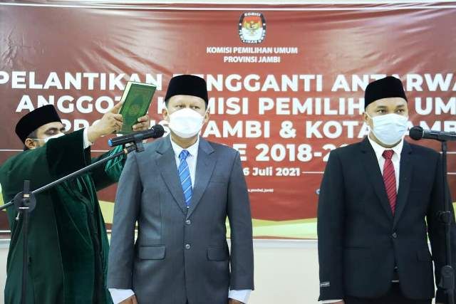 Pelantikan ini dilaksanakan secara virtual di Aula Kantor KPU Provinsi Jambi, Selasa 6 juli 2021.
