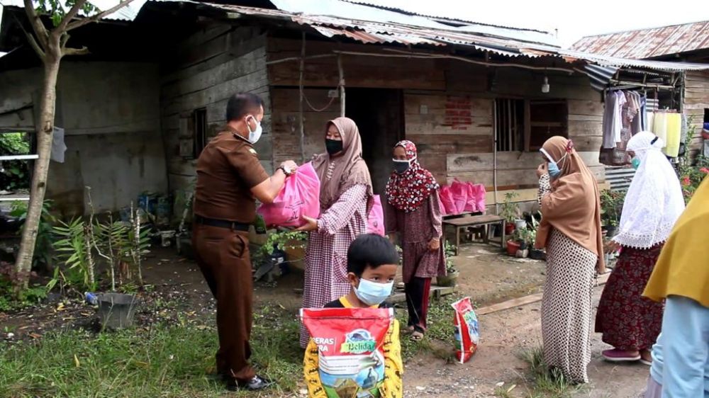 Pembagian Sembako, dilakukan secara simbolis oleh Plt. Kajati Jambi Dr. Hermon Dekristo, SH. MH. bersama Ketua IAD Wilayah Jambi Puspa Hermon Dekristo yang didampingi Aspidsus Eko Adhyaksono, Aspidum Sinuhaji, Aswas Eko Bambang dan Asdatun Agus Irawan dengan membagikan 100 paket sembako bagi masyarakat yang terdampak covid-19 di daerah 13 dekat rumah dinas jaksa.