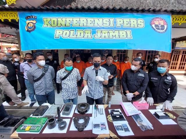 Dirreskrimum Polda Jambi Kombes Pol Kaswandi Irwan mengatakan bahwa 7 pelaku tersebut melakukan aksi pencurian perangkat alat berat di dua lokasi yang berada di wilayah Kecamatan Pamenang Kabupaten Merangin.