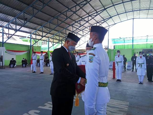 JAMBERITA.COM - Walikota Jambi Syarif Fasha kukuhkan 56 Pasukan pengibar bendera (Paskibra) Kota Jambi yang akan melakukan pengibaran bendera merah putih pada 17 Agustus mendatang.