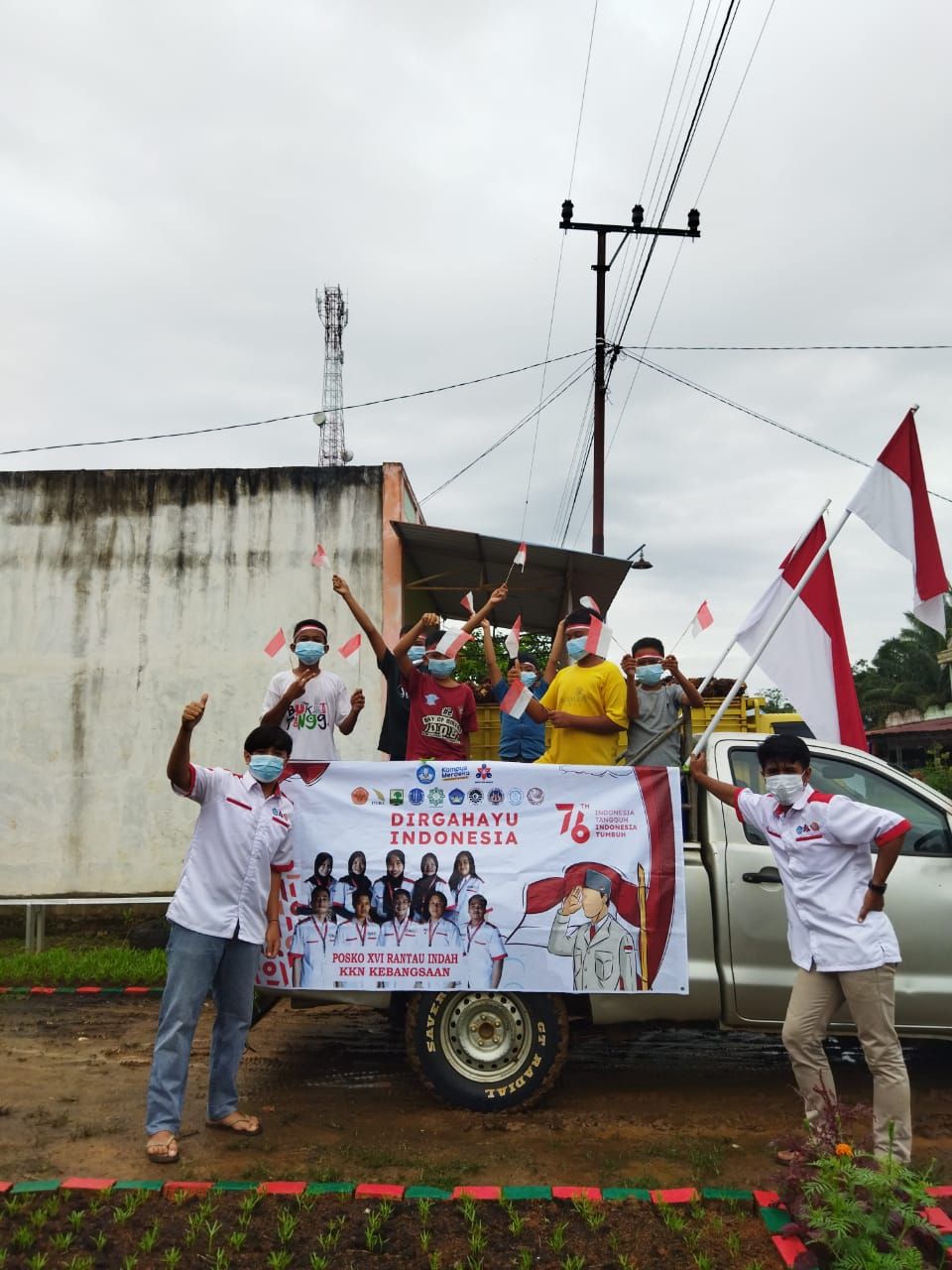 Posko 16 punya cara unik merayaakan kemerdekaan, berbekal mobil pick up yang sudah di modifikasi menjadi mobil hias dan tempelan poster taat prokes, seluruh peserta KKN bergerak keliling seluruh kelurahan Rantau Indah.