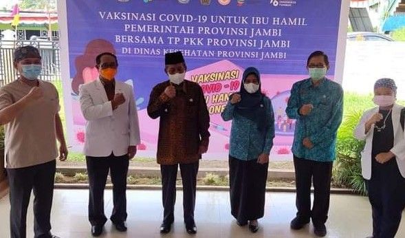 JAMBERITA.COM - Pemerintah Provinsi (Pemprov) Jambi bersama TP PKK melakukan pencanangan vaksinasi bagi ibu hamil mulai dari usia usia 13 minggu sampai dengan sebelum persalinan.