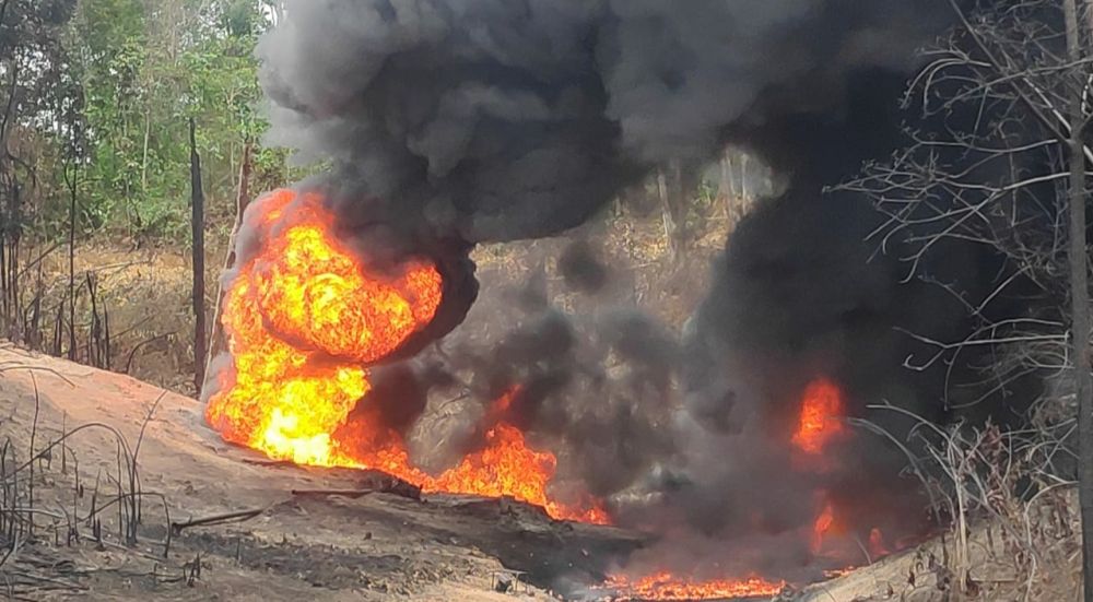 JAMBERITA.COM - Lahan terbakar akibat ledakan minyak ilegal (Ilegal Drilling) di lokasi PT.AAS Wilayah Desa Bungku Kabupaten Batanghari masih menyala hingga hari ke 20.