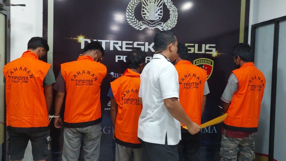 Pihak kepolisian juga berhasil mengamankan lima pelaku yang melakukan aktivitas ilegal drilling yakni berinisial ZP (43) warga Kota Jambi, MR (38) warga Kota Jambi, IF (25) warga Kota Jambi, OJP (32) warga Kota Jambi dan RR (50) warga Kabupaten Sarolangun.