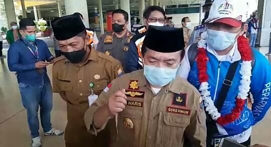 JAMBERITA.COM - Gubernur Jambi Al Haris menyambut kepulangan Kontingen NPC Jambi yang berlaga di Pekan Paralimpik Nasional (Peparnas) Papua XVI di Bandara Sultan Thaha Jambi, Selasa (16/11/2021).
