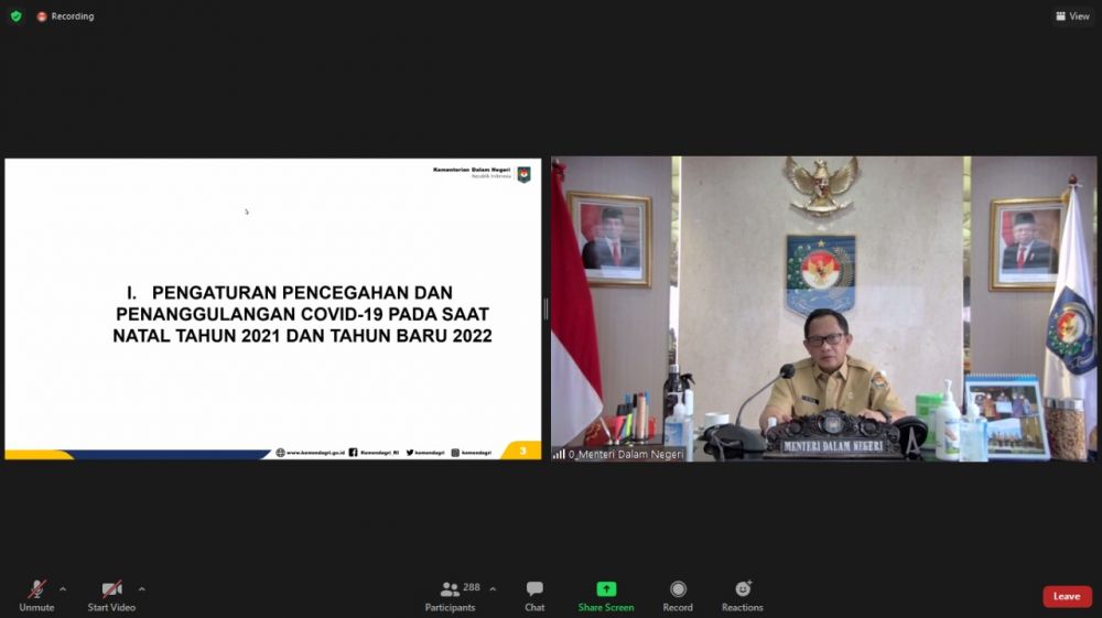 “Kita semua tidak boleh lengah, kemudian oleh karena itu vaksinasi juga menjadi kunci,” ujar Mendagri saat membuka Rapat Kesiapan Penerapan PPKM Natal 2021 dan Tahun Baru 2022, Percepatan Vaksinasi, serta Belanja Daerah (APBD) di Kantor Pusat Mendagri secara virtual, Rabu (8/12/2021).