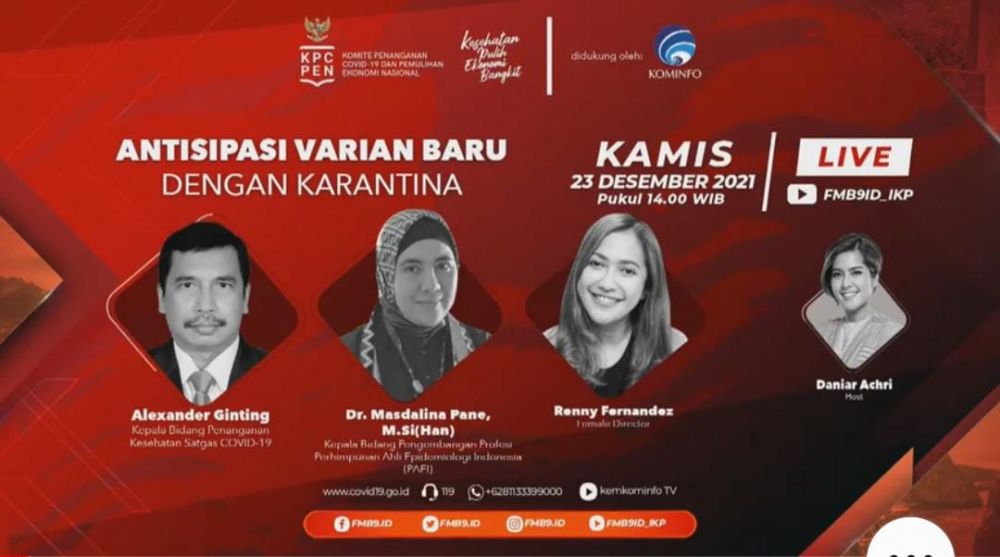 Dalam upaya membendung masuknya varian Omicron, Kepala Bidang Penanganan Kesehatan Satgas COVID-19, Alexander Ginting menyatakan, pemerintah memperketat pintu-pintu masuk ke Indonesia, yakni di bandara, pelabuhan, serta perbatasan. “Ini harus kita kunci. Penguncian ini, salah satu mekanismenya adalah dengan karantina,” ujar Alex dalam Dialog Produktif dari Media Center Forum Merdeka Barat 9 (FMB9) – KPCPEN, Kamis (23/12/2021).
