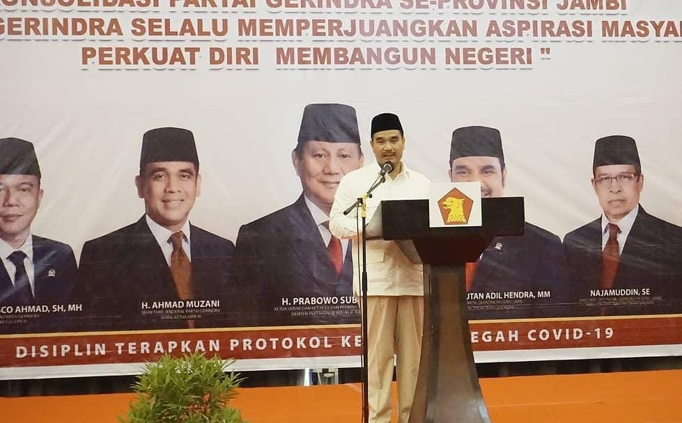 Permintaan itu disampaikan Ketua DPD Partai Gerindra Provinsi Jambi Dr. Ir. H. A.R. Sutan Adil Hendra, MM berdasarkan aspirasi yang berkembang di semua tingkatan partai, bahkan hal ini sudah duluan disampaikan secara formal disampaikan dalam Rakorda Partai Gerindra Provinsi Jambi, 15 Februari 2021, di Swiss Bell Hotel Jambi.