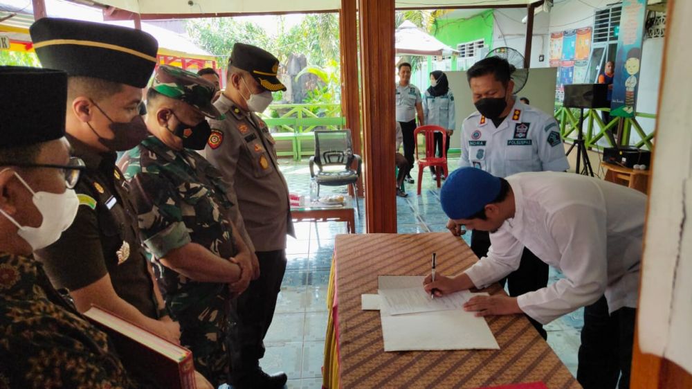 Ikrar Setia NKRI oleh 1 orang Napi Kasus Terorisme Lapas Kelas IIB Muara Tebo tersebut, dengan janji setia berpegang teguh pada Pancasila dan UUD 1945, dibacakan Kamis (30/12/2021).