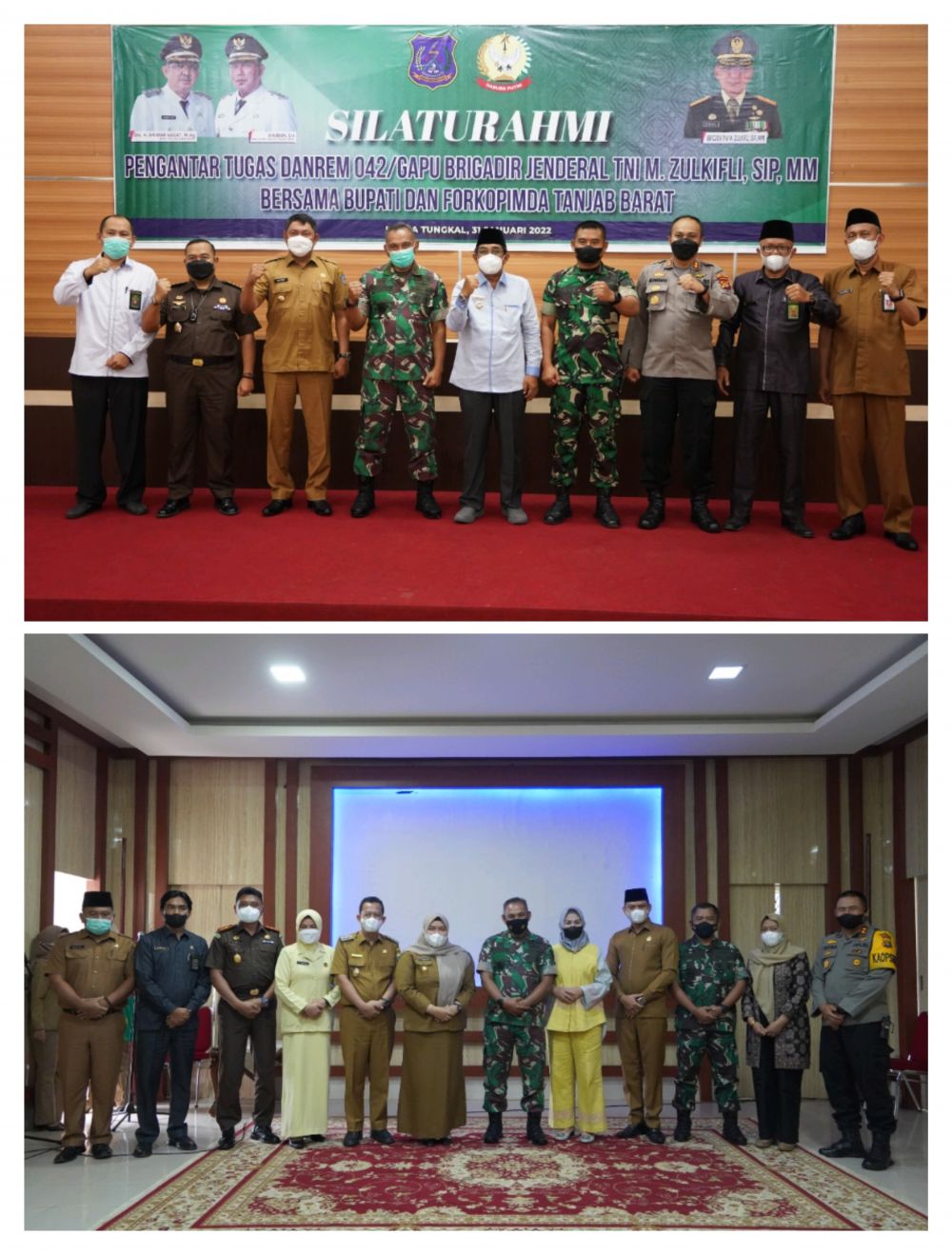 "Atas nama pemerintah daerah, Bupati ucapkan terimakasih kepada Danrem atas bimbingan dan dorongan kepada kita semua, supaya kita tangguh melawan Covid-19. Banyak hal yang kami rasakan terkait kerjasama dan sinergitas bersama Danrem 042/Gapu dalam progres pembangunan di Tanjab Barat serta program pemerintah,".